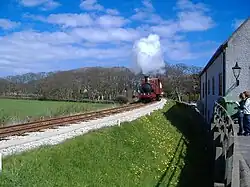 With the completion of drainage works and infrastructure replacement the full line reopened with due ceremony in May of 2003 and the station again became one of two regular passing places; services reverted to their common seasonal pattern between Easter and October to a regular standard timetable of four trains in each direction between the selected dates, the second returns of the day passing at Castletown and the remainder at Ballasalla.