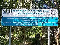 The National Parks & Wildlife Service Leacock Regional park is home to one of the last remaining stands of Cumberland Plain Woodland. It is also home to the critically endangered Cumberland Plain Land Snail (Meridolum corneovirens). The ridge line at the top of the park offers views to the Holsworthy bush land. The bellbird walking track takes you through the remnant stand of Cumberland Plain Woodland and can be linked to a track along the Georges River where a lookout can be found by the Casula Powerhouse Arts Centre. The 'Weaving Garden' bush regeneration group are currently bush regenerating within the reserve.