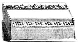 The instrument was first described by Athanasius Kircher in his 1650 work Musurgia Universalis, though the lack of an image may have left doubt in the minds of some writers. (The New York Times, for example, has carried an article claiming he described the instrument,[4] and another stating he did not describe it in Musurgia Universalis.[5]). His description appears in Book 6, Part 4, Chapter 1, under the heading "Corollaria," (emphasis added):