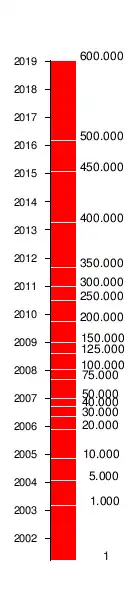 | 50,000 articles | 4 January 2007 | Puerto Real (Puerto Real)[11][12] |