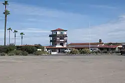 During World War II, the island was closed to tourists and used for military training facilities.[19] Catalina's steamships were expropriated for use as troop transports and a number of military camps were established. The U.S. Maritime Service set up a training facility in Avalon, the Coast Guard had training at Two Harbors, the Army Signal Corps maintained a radar station in the interior, the Office of Strategic Services did training at Toyon Bay, and the Navy did underwater demolition training at Emerald Bay.[2][20]