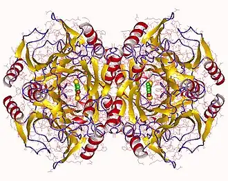 ![]() Catechol 2,3-dioxygenase tetramer, Pseudomonas alkylphenolica | |||||||||
