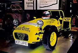 In 1994 Caterham produced a model called the '21'.[9] Mechanically the 21 was very similar to the 7, using a modified 7 spaceframe chassis with a new GRP roadster-style body, including a wrap-around windscreen and fold-away fabric hood (convertible top) manufactured by Oxted Trimming Company.
