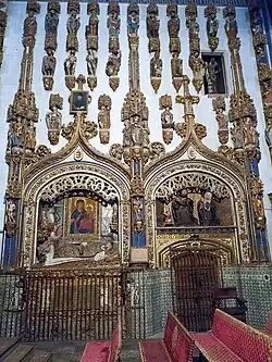 It preserves the first altarpiece in which Solomonic columns were used in Spain. It was assembled in 1664 as an act of atonement to house a canvas of the Immaculate Conception that had been outraged that same year when the face of the Virgin was slashed with a dagger by an opponent to the Dogma of the Immaculate Conception of Mary.