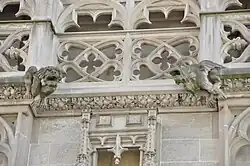 During the reconstruction, the decision was made to preserve and restore as much of the 19th-century reconstruction as possible. The roof of the main and side aisles was repaired using ceramic-coloured enamel tiles with the original 19th-century pattern.[17] The flèche was reconstructed, and 264 pieces of lead decorations were added.