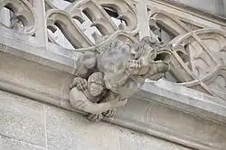 The gargoyle of the drunk woman is said in folklore to have been the master builder's alcoholic wife. Legend says that because she was tarnishing his reputation by her appearance in the town, he immortalised her as a gargoyle.