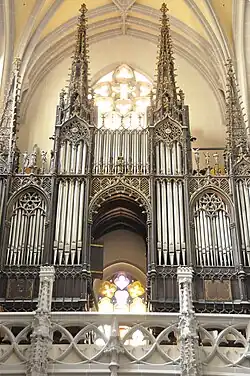 After the demolition of the old church, the new cathedral was vaulted using a rib vault. The particular symmetric shapes of the vault differed from bay to bay, and they were not folded from one bay to the other. The newest part of the construction, the sacristy and chapel, were done during this third stage.