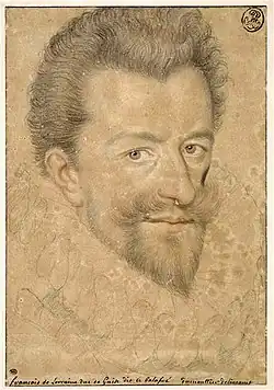 In June 1584, the illness and death of Henry III's heir François, Duke of Anjou made the Protestant Henry of Navarre the new heir presumptive under Salic law. Faced with the prospect of a Protestant king, Catholic nobles gathered at Nancy in December 1584, and the League drew up a treaty with Philip II's ambassadors at Joinville.[3] Following this agreement, the Catholic confraternities and leagues were united as the Catholic League under the leadership of Henry I, Duke of Guise.[4]