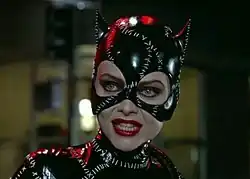 - Selina Kyle / Catwoman appears in Batman Returns (1992), portrayed by Michelle Pfeiffer. For her design, screenwriter Daniel Waters took inspiration from Kyle's appearance in Catwoman: Her Sister's Keeper while her characterization drew on her pre-Crisis interpretation.[23][24] Prior to Pfeiffer's casting, Madonna, Jennifer Beals, Lorraine Bracco and Demi Moore were linked to the role, with Madonna in particular as the frontrunner, while Sean Young campaigned heavily to take on the role. When it was suggested to director Tim Burton that Pfeiffer was interested, the producers thought "She's perfect. She also could be both Selina Kyle and Catwoman."[25][26] This version of Kyle is the mousy, lonely, and frustrated secretary of corrupt tycoon Max Shreck. After inadvertently stumbling onto his plot to steal Gotham City's electricity, he attempts to murder her. However, she is mysteriously revived by a group of cats. Returning home, she suffers a psychotic break and reinvents herself as the seductive and deadly Catwoman. While seeking revenge on Shreck, she allies herself with the Penguin, comes into conflict with Batman, and enters a brief relationship with Bruce Wayne, initially unaware that he is Batman. Eventually, she succeeds in killing Shreck, during which she is presumed dead as well. However, her body disappears while a figure wearing her suit later surfaces.