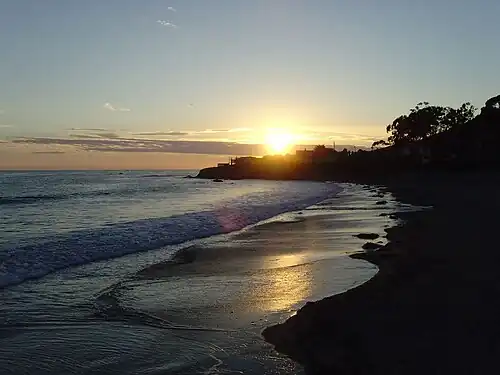 Cayucos State Beach is a protected beach in the state park system of California, United States. It is located in Cayucos, San Luis Obispo County.[1] The sandy beach environment supports uses of swimming and surfing.[2] Prehistorically this general area of the central coast was inhabited by the Chumash people, who settled the coastal San Luis Obispo area approximately 10,000 to 11,000 BCE, including a large village to the south of Cayucos at Morro Creek.[3] The 16-acre (6.5 ha) park was established in 1940.[4]