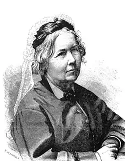 ![]() Cecilia Fryxell during her time as principal at her school at Rostad, Kalmar. Portrait by wood engraver Evald Hansen. | |