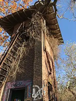 In the 21st century, much of the yard now lies abandoned and is an attraction for urban explorers, despite the dangers of the old buildings and facilities which contain lead paint and asbestos.[63] The former New Haven Railroad coaling tower, built in 1927, stands abandoned to this day within Amtrak's portion of the yard and is a local landmark.[39][64]