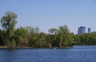 Cedar Lake in 2012. Downtown Minneapolis skyline is visible in the background. | |