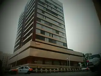 The  Bank of Ghana (BoG) Office Building Annex  which is simply referred to as the CEDI House. Started in 1970 and completed in 1973, the building houses the Banking and Supervision  Departments as well as the Central Securities Depository of the BoG. It was designed by Ghanaian architect Professor John Owusu Addo, who is the brain behind many other iconic buildings in Ghana, including the unity hall of KNUST.[1][2]