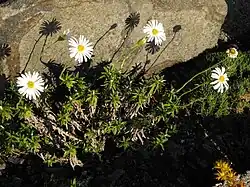 Celmisia walkeri is native to New Zealand, hence its common name is a New Zealand daisy.[1]
