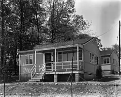 During World War II, when other building materials were in short supply, cemesto was used extensively in the United States.[6][9] Cemesto was used to build temporary office buildings in Washington, D.C.[13] Skidmore, Owings & Merrill adapted the Pierce system and used cemesto panels for the designs of some 2,500 prefabricated homes, known by the nickname "cemestos," erected in Oak Ridge, Tennessee, to house Manhattan Project workers and their families.[14] In 1942, the U.S. Farm Security Administration built 400 cemesto homes in Maryland at a site alongside Aero Acres.[3]