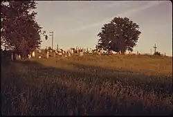 Cemetery prairies are remnants of native North American prairie that survive on land set aside by settlers as burial grounds. These places were thus left unplowed and largely undisturbed, such that the cemeteries became de facto nature preserves.[1] Natural prairie grasses are often perennial species that regrow from the roots after ruminant grazing or grassfire; plowing destroys the root system and eventually the ecosystem.