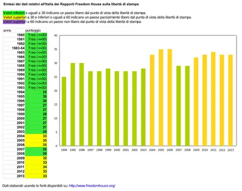 - ^ "Global Press Freedom Deteriorates – Proportion of Global Population With Access to Free Media Plunges to New Low Italy Drops to "Partly Free"". Archived from the original on 5 December 2005.