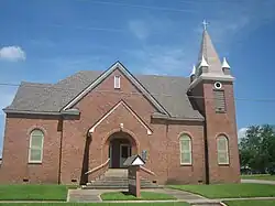 The town of Center made national news twice in 1920s for the lynchings of black murder suspects without a trial. On August 3, 1920, Lige Daniels was seized by an angry mob that broke into the Shelby County Jail, where he was being held on charges of the beating death of a woman.[12][13] Daniels, an 18-year old black man, was dragged out and hanged from a tree in front of the courthouse, famous as the "Center Hanging Oak". The oak tree was used again as a gallows on May 21, 1928, when another mob intercepted another 18-year old African-American, accused murderer Eolis Evans, as he was being returned to the county jail.[14] The "hanging oak" tree itself died in 1990 and was cut down.[15]