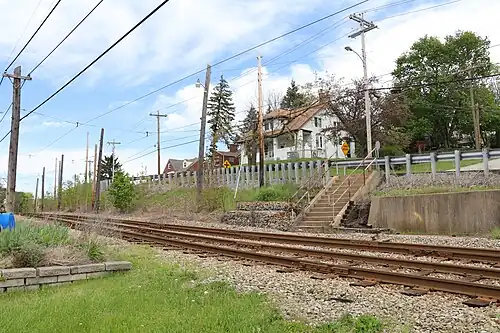 ![]() Station site in 2017. Only a staircase remains. | |||||||||||