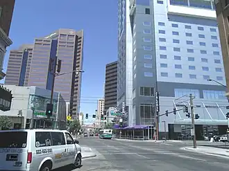 Capitalizing on its retro mid-1960s styling, Camelback Towers became the Landmark on Central in 2004,[23] continuing a tradition of the city's few apartment towers becoming ownership condominia later on. Also that year, Century Plaza [24] (3225 N), originally built in 1974 as offices, had a complete exterior and interior remodel as part of its conversion to condominiums.[25] As reconstruction continued, two additional floors were started in 2007.[26] Century plaza is now known as "One Lexington".[27]
