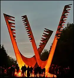 The best known monument is Pomnik Braterstwa Broni (Monument of Brothers in Arms) made in 1967 and designed by Sławomir Lewiński. It is a military monument which looks like hussar wings. The monument is situated on the hill on the main axis. From this place there is a beautiful view on the main chapel.