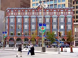 Central Chambers is a building at the corner of Elgin Street and Queen Street in Ottawa that is a National Historic Site. It is located at 42 to 54 Elgin Street, next to Bell Block. It faces the Canadian War Memorial at Confederation Square. Central Chambers was built between 1890 and 1893[1] and designed by John James Browne of Montreal, an example of Queen Anne Revival commercial architecture. Formerly serving as an office for the Canadian Atlantic Railway, it now houses the National Capital Commission.[2]