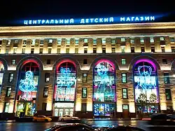 The Central Children's Store on Lubyanka is a landmark building and shopping mall located in the historic center of Moscow, in Lubyanka Square. Commissioned in 1957, for several decades it has been the largest children's department store in the Soviet Union.[1] Despite the nod towards its name and origin at present the shopping center is to a large extent dedicated to baby and children's goods and family entertainment and other offers and services.