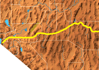 The Central Overland Route (also known as the "Central Overland Trail", "Central Route", "Redden's Way", "Simpson's Route", or the "Egan Trail") was a transportation route from Salt Lake City, Utah south of the Great Salt Lake through the mountains of central Nevada to Carson City, Nevada. For a decade after 1859, until the first Transcontinental Railroad was completed in 1869, it served a vital role in the transport of emigrants, mail, freight, and passengers between California, Nevada, and Utah.