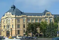 From its founding until 1909, the library functioned in the main university building. From 1906 to 1908, the current library building was erected following plans by architects Kálmán Giergl and Flóris Korb; books were then moved there in 1908–09.[3] Extensions to the building were added until 1934, and an annex with a capacity of over 2,000,000 volumes was added in 1961.[2] In 1996, the library began publishing Philobiblon, a biannual academic journal.[4]