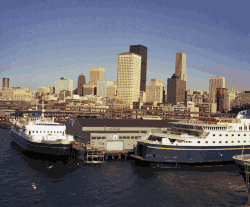 Bell Street Pier, Edgewater hotel, and Port headquarters