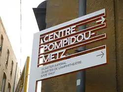 The museum is the cornerstone of the newly created Amphitheater District of Metz. The district of 50 ha (123.6 acres), thought by French architects Nicolas Michelin, Jean-Paul Viguier, and Christian de Portzamparc, and designer Philippe Starck, is currently under construction and includes the edification of a convention centre and a shopping mall. The quarter encompasses already the Seille park designed by French landscape architect Jacques Coulon and the Arènes indoor sport arena built in 2002. The urban project completion is expected to take place by 2016. Swiss designer Ruedi Baur created the Metz's signage systems.