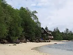 Cerf island has a small art gallery, Anglican chapel, Catholic chapel, and a cemetery.[3] A high standard of accommodation is available in 3 hotel establishments (Cerf Island Resort, Fairy Tern Chalets,[4] and L'Habitation[5]) currently on the island. There is also a guest lodge, 3 restaurants (Kapok Tree), a spa, a small shop, and a beach bar. There are no paved roads or local infrastructure on the island; travel to-and-from the island is by boat and by helicopter which lands at the helipad.[6] There are no roads or local infrastructure on Cerf. Telephone service and electricity is provided from the mainland Mahe. Diving centers are plentiful on Mahe and snorkeling equipment is available for hire on the hotels of Cerf Island.