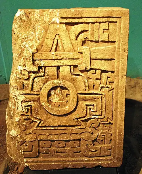 Major investigation and excavation of the site was carried out in the late 1980s and early 1990s by a team of 200 people headed by Marcus Winter.[3] Much of what little is known of this Mixtec region comes from finds at this site, especially finds related to the Mixtec glyph writing system.[1] Most of the finds were contained in Tomb 5, located south of the main plaza in the palace complex. This tomb contained a large quantity of Mixtec ceramics as well as a multicolored urn with a representation of the god of wind or fire, with a brazier on its head, seated on a platform decorated with four glyphs. This piece is now on display at the Museum of Oaxaca.[1] Most of the Ñuiñe writing has been found in this tomb, on gravestones. This kind of Ñuiñe writing contains a central glyph, usually the name of the deceased accompanied by dates. Two gravestones of this type were found in Tomb 5 and were probably of the governors of the city. It is the same writing system that was found in San Pedro y San Pablo Tequixtepec about 25 km to the north of the site, in the form of inscriptions under painted battle scenes were found.[2] Tomb three was found to have been already sacked, but it still contained fragments of an urn and a carved stone.[3]