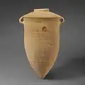 Amphora of coarse ware | 74.51.2299 | 4th century BCE | The name "Baalazor," a well-known theophorous name, likely the owner's name. | RES 1526 | 1828 | Hall 2, XXVII; Peckham, 17 |