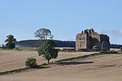 Cessford Castle, is a large ruined mid-15th century L-plan castle near the village of Cessford, midway Jedburgh and Kelso, in the historic county of Roxburghshire, now a division of the Scottish Borders. The Castle is caput of the Barony of Cessford, and the principal stronghold of the Kerr family, notorious Border Reivers, many of whom served as Wardens of the Middle March.