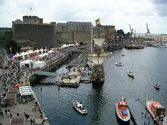 The Château de Brest (Breton: Kastell Brest, pronounced [ˈkastɛl bʀest]) or Castle of Brest is a castle in Brest, Finistère, Brittany, France. The oldest monument in the town, it is located at the mouth of the river Penfeld at the heart of the roadstead of Brest, one of the largest roadsteads in the world. From the Roman castellum to Vauban's citadel, the site has over 1700 years of history, holding right up to the present day its original role as a military fortress and a strategic location of the highest importance. It is thus the oldest castle in the world still in use, and was classified as a monument historique on 21 March 1923.[1]
