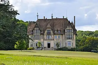 In 1887, Baron Camont de Valence and Marie de Beaumont sold the former estates of Petimus and Evosseaux to Joachim Murat, 5th Prince Murat,[a] and his wife, Cécile Ney d'Echingen (a great-granddaughter of Marshal Ney). Prince Murat tore down the original château and hired French architects Blondel et Langlois to design and build his Anglo-Norman style château.[3] He also had an English-style park designed by the landscape architect Duchene. Prince Murat, who was passionate about hunting, built large stables, a number of outbuildings (built in 1896) and a small stud farm built on the grounds.[1] Prince Murat was master of the Hunt (Equipage) known as the Rallye-Champly.[4][5] His father, Joachim, 4th Prince Murat, died at the chateau in 1901.[6]
