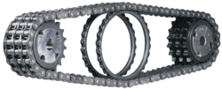 - ^ Chains operating at high speeds comparable to those on motorcycles should be used in conjunction with an oil bath, according to: Lubrecht, A. and Dalmaz, G., (eds.) Transients Processes in Tribology, Proc 30th Leeds-Lyon Symposium on Tribology. 30th Leeds-Lyon Symposium on Tribology, 2–5 September 2003, Lyon. Tribology and Interface Engineering Series (43). Elsevier, Amsterdam, pp. 291–298.