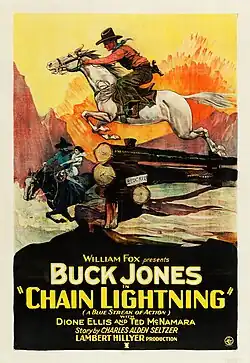 Chain Lightning is a 1927 American silent Western film directed by Lambert Hillyer and written by Lambert Hillyer based upon the novel Brass Commandments by Malcolm Stuart Boylan.[1] The film stars Buck Jones, Diane Ellis, Ted McNamara, Jack Baston, William Welsh, and Martin Faust. The film was released on August 14, 1927, by Fox Film Corporation.[2][3][4] The novel that the film is based upon was previously filmed as Brass Commandments (1923).[1]