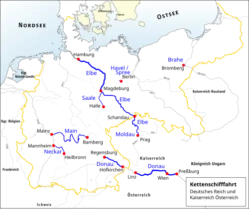 - ^ "Kettenschifffahrt auf der sächsischen Elbe", In: Austria, Archiv für Consularwesen, volkswirthschaftliche Gesetzgebung und Statistik, Jahrgang XXII, No. 34, Kaiserl.-Königl. Hof- und Staatsdruckerei, Vienna, 1870, pages 638–639