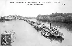 Starting from Paris in 1854, chain boat services spread upstream to the town of Montereau at the confluence with the Yonne, as well as downstream to Conflans (at the mouth of the Oise).[3] From 1860, services were expanded towards the mouth of the Seine.[10] The maximum total length of the chain in the Seine was 407 kilometres (253 mi). In addition, in 1873 another 93-kilometre-long (58 mi) route on the Yonne itself – between Montereau and Auxerre – was added.[10]