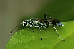 Chalybion bengalense, also known as the oriental mud dauber, is a widely distributed member of the Chalybion genus. Melittobia assemi has been reported as a parasite of this species.[1]