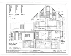 By 1920, the House was restored. The woodwork, which had been riddled with borers, was replaced with new, the roof covered with asbestos shingles, and green shutters placed at the windows. The inside remained the same, with steep stairways, small-paned windows, a great attic, and low-ceiled kitchen.[5] The services of Mr. Eskew, who did the restorative work on the Chamberlain House, were also secured for the restoration of the Adobe Schoolhouse (1920–21).[6]