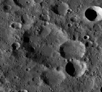 Champollion is a lunar impact crater that lies on the far side of the Moon. It is located north-northeast of the larger crater Shayn, and south-southeast of Chandler.
