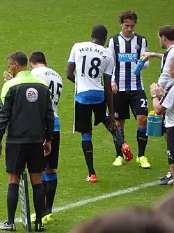On 26 July 2015, Premier League side Newcastle United announced the signing of Mbemba.[12] Four days later, he signed a five-year contract with the club.[13] He made his debut on 9 August on the first day of the Premier League season, starting in a 2–2 home draw with Southampton.[14]