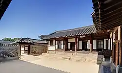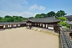 Oejo (외조; 外朝) refers to the part of a palace where the king conducted state affairs.[74][58] It can be subdivided into the chŏngjŏn (정전; 正殿; jeongjeon; main area[75]) and p'yŏnjŏn (편전; 便殿; pyeonjeon; secondary area[76]).[58]