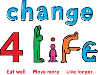 Change4Life aimed to help families make small, sustainable yet significant improvements to their diet and activity levels. It uses the slogan "more kids, less food, eat less, move more, live longer".