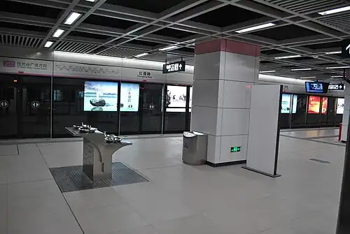 Changgang Road Station (Chinese: 长港路站) is a station of Line 2 of Wuhan Metro. It entered revenue service on December 28, 2012. It is located in Jianghan District.[1] The old name is Jinse Yayuan Station.[2]