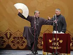 Changshan (Chinese: 長衫; pinyin: chángshān; lit. 'long shirt'; [ʈʂʰǎŋʂán] ⓘ), also known as changpao (Chinese: 長袍; pinyin: chángpáo; lit. 'Long robe'), and dagua (Chinese: 大褂; pinyin: Dàguà; lit. 'Great jacket'), is a form of paofu, Chinese robe, which was derived from the Qing dynasty qizhuang, the traditional dress of the Manchu people, which were worn by Manchu men.[1]: 129 The changshan was actually developed by the Han Chinese through the modification of their own Ming dynasty's Hanfu by adopting some Manchu men's clothing elements in one of their Hanfu changshan.[1]: 129 In function, the changshan is considered the male equivalent of the women's cheongsam (also known as qipao). The changshan was often worn by men with a magua, also commonly translated as riding jacket in English.